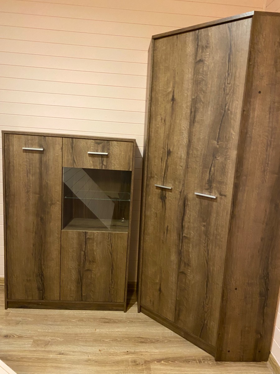 Тумба-витрина Nepo дуб монастырский REG1D1W/90 станет стильным дополнением к гостиной или столовой.